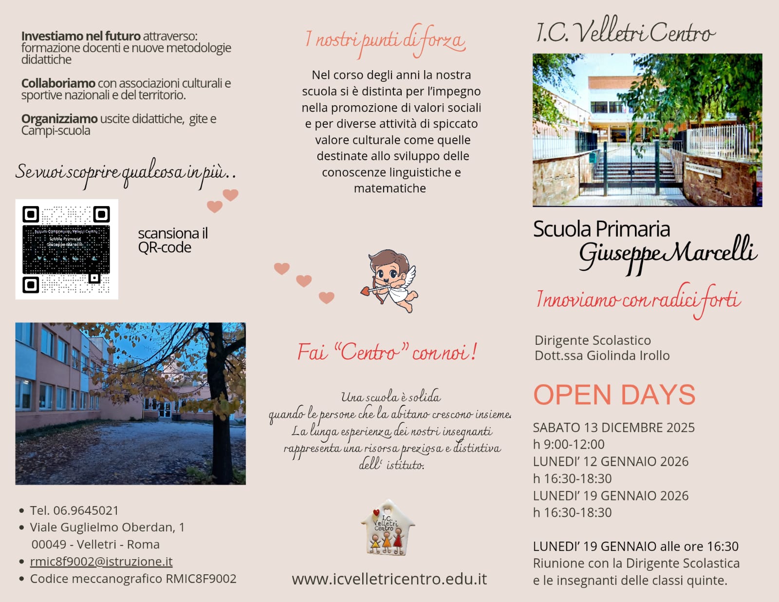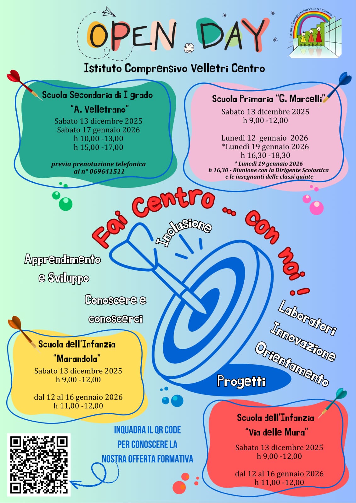 L’Istituto Comprensivo Velletri Centro ti invita a partecipare alle giornate di Open Day dedicate alle iscrizioni per l’anno scolastico 2026/2027.