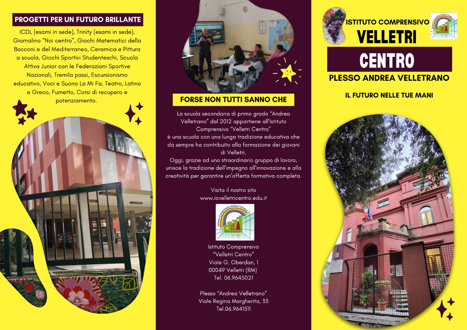 - Scuola secondaria I grado “Andrea Velletrano”, Viale Regina Margherita, 33 – 00049 Velletri (Roma)